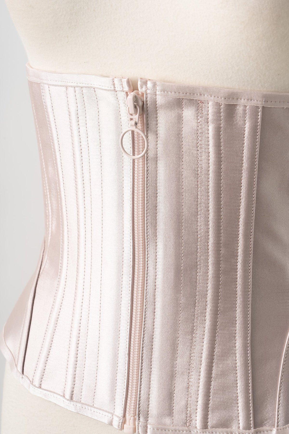 A sharp-type corset that creates the most powerful and sharply defined waist in the series. Its firm ribcage support makes it perfect for those concerned about their undergarment fit.